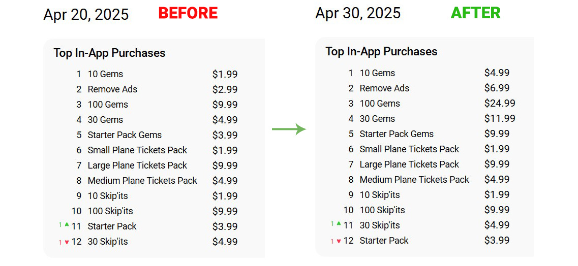 One of the major changes we pointed out before was the dramatic increase in IAP pricing: