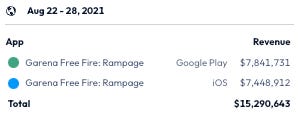 data.ai estimates about $15.3M in weekly net revenue for the week of Aug 22-28, 2021.