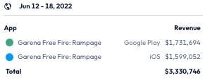 Free Fire drops to an estimated low of $3.3M in weekly net revenue for June 12-18, just last month.
