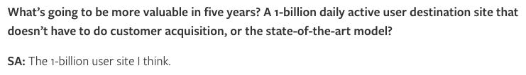 In an interview with Stratechery, Sam Altman (OpenAI’s CEO) suggested the future bases of competition would shift to distribution: