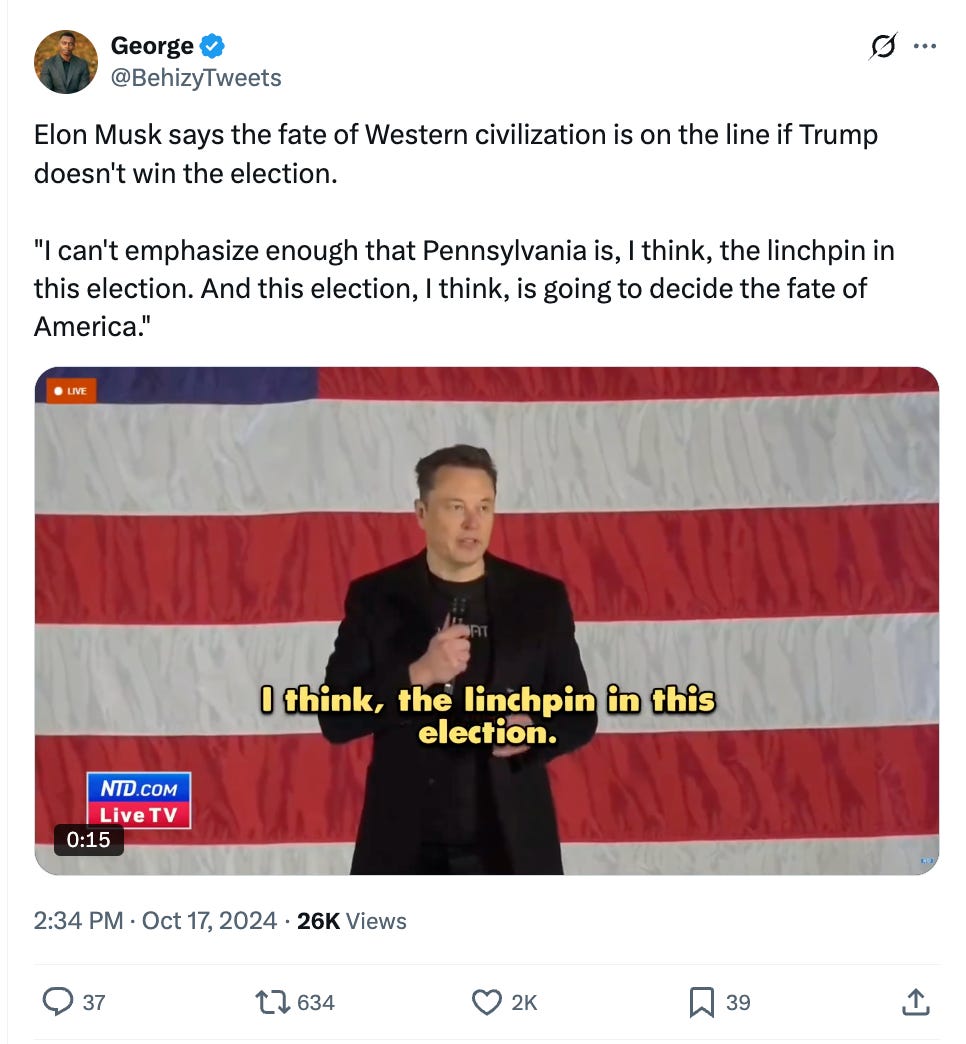 Consider how Musk approached the 2024 U.S. Presidential election. After analyzing the electoral landscape, he identified Pennsylvania as the "linchpin" state that would likely determine the outcome. Once this single point of greatest leverage was identified, he didn't hesitate—he relocated to Pennsylvania, established a campaign war room, invested over $100 million, and remained until he helped secure the state.